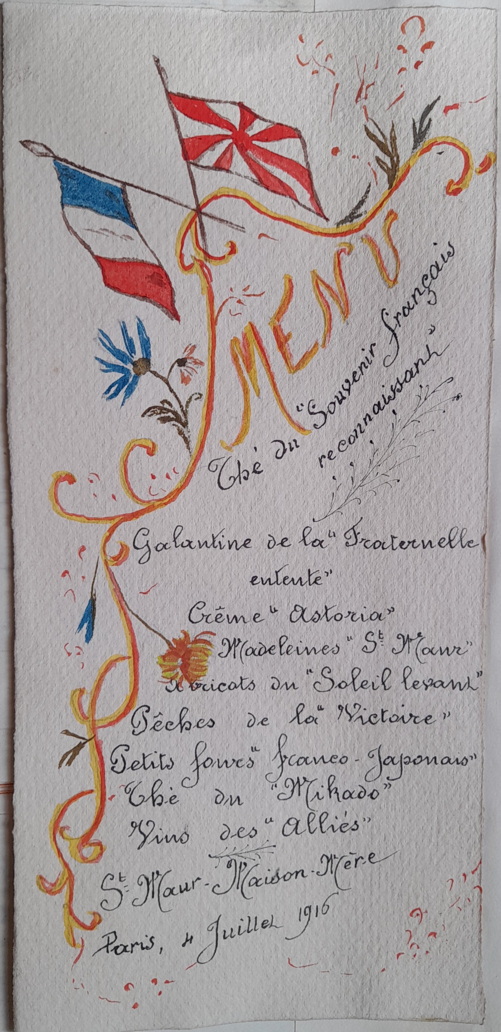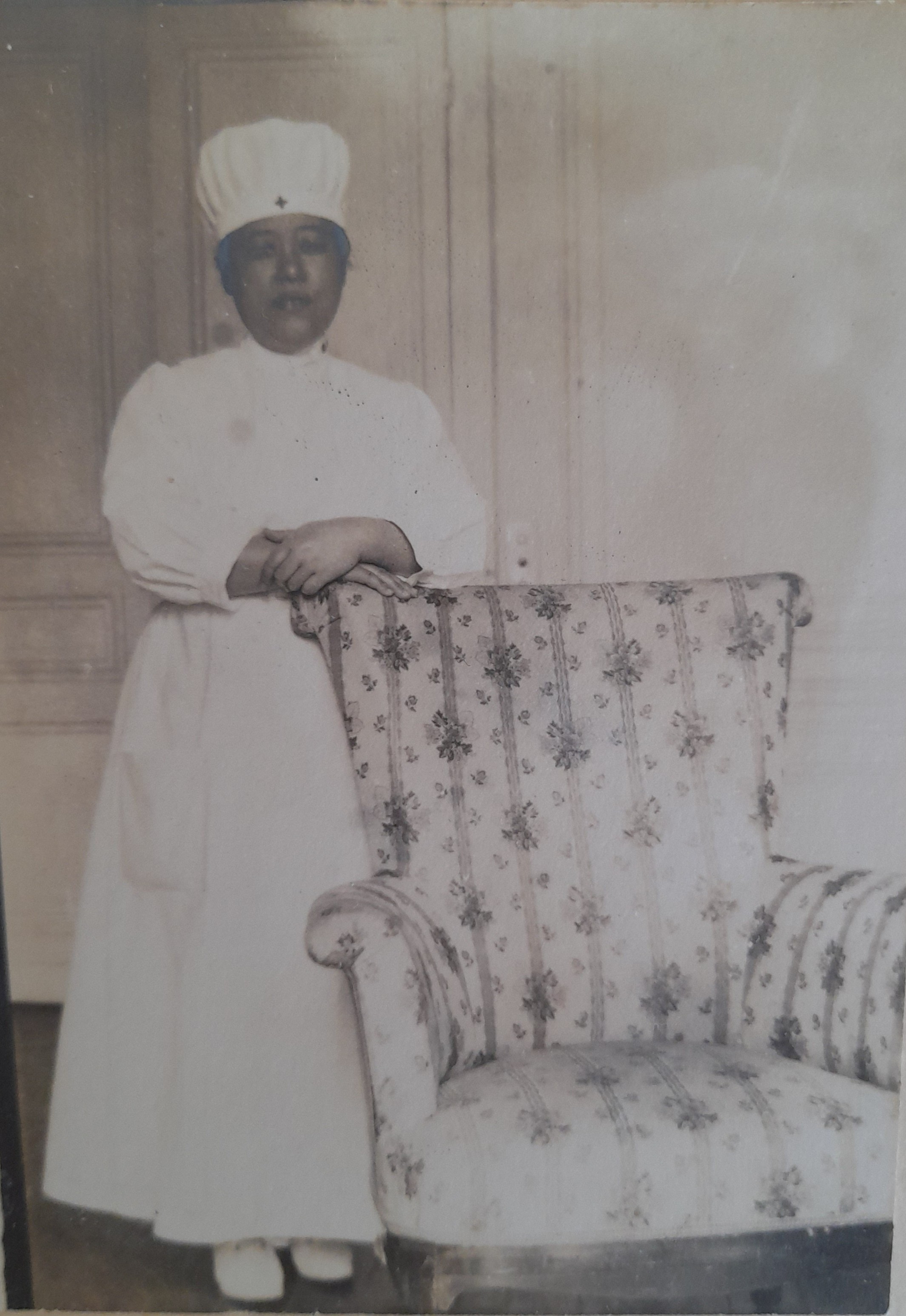 L’équipe reste dix-huit mois à Paris (contre onze à Netley et quinze à Saint-Pétersbourg), signe de l’importance de cette unité. La mission s’achève officiellement en juin 1916. Le 4 juillet, les infirmières sont invitées par la Supérieure générale de la congrégation, Mère Marguerite-Marie Delbecq, à prendre le thé à la Maison-mère. Cette dernière leur offre également à chacune un souvenir. C’est très probablement à cette occasion qu’Ume Yuasa lui remet l’album photographique. |