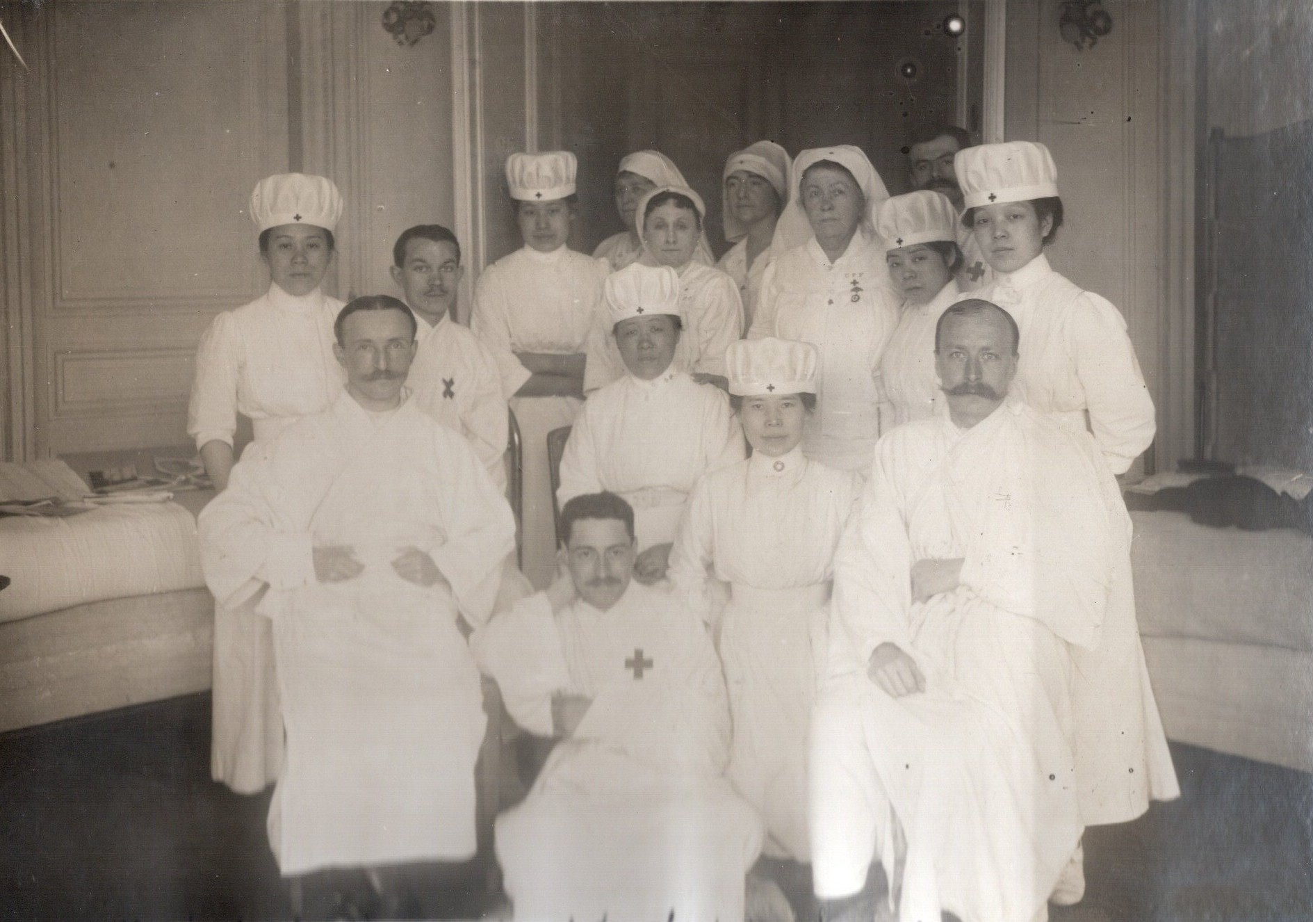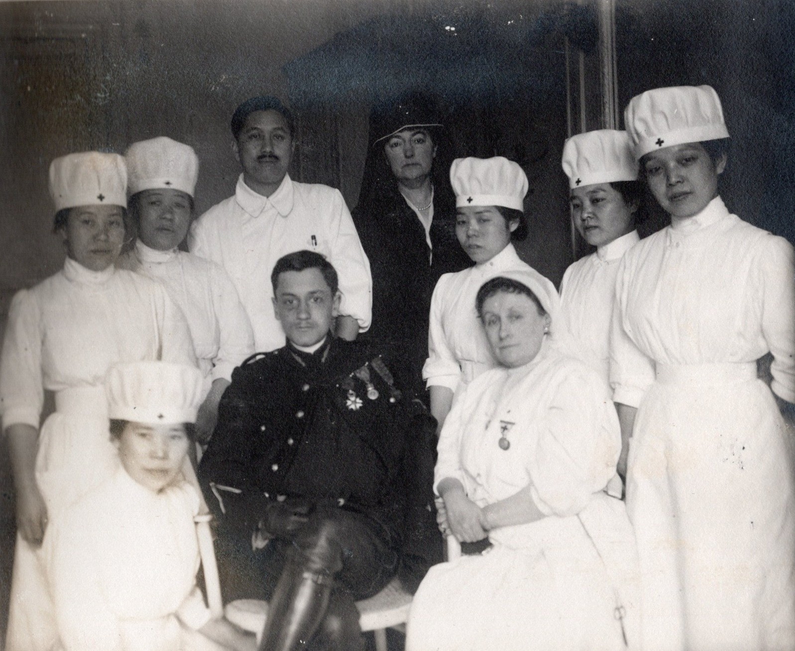 Cette expertise devient un atout diplomatique et humanitaire pour le Japon, qui peut ainsi démontrer sa modernité et son engagement en faveur de la paix et des soins médicaux. Dès le déclenchement de la Première Guerre mondiale en 1914, le gouvernement japonais demande à la Croix-Rouge d’envoyer des équipes médicales dans trois pays alliés : l’Angleterre, la France et la Russie.