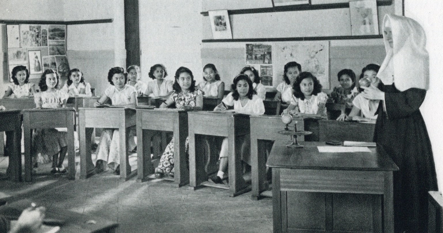 Salle de classe à Penang (années 1950, archives des sœurs de l'EJNB, 2M22/7)