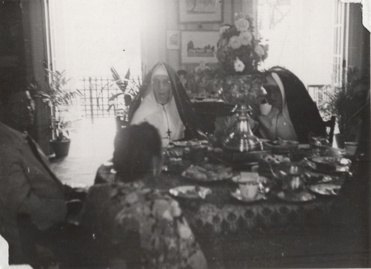 Deux soeurs prennent le thé avec le couple royal (1952, archives des sœurs de l'EJNB, n°445)