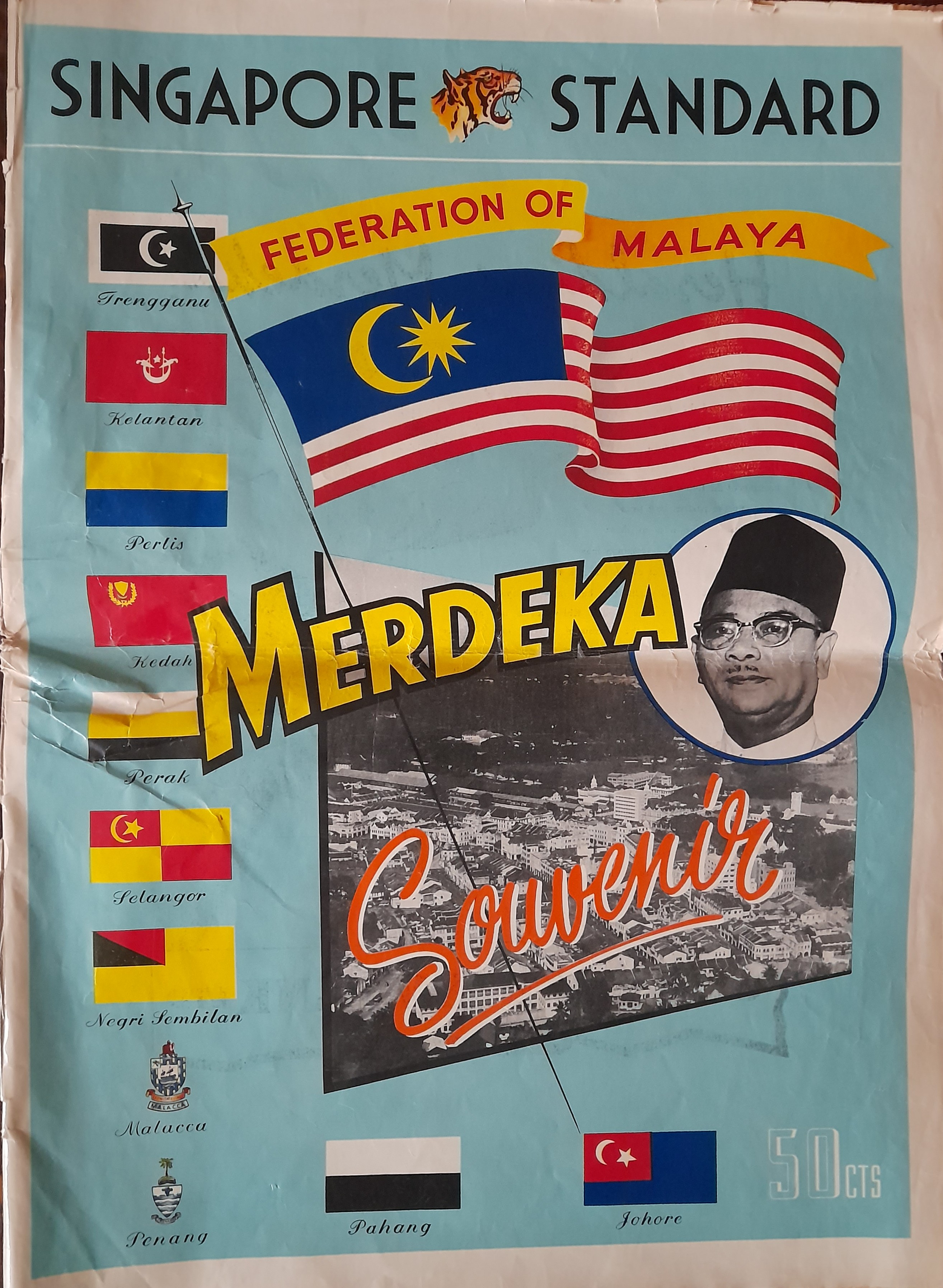 Journal Singapore Standard sur l'indépendance malaise (1957, archives des sœurs de l'EJNB, 2M1/13)